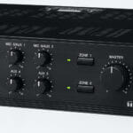 Микшерный усилитель, 60 Вт, 3 микр, 2 AUX, 1 приоритетный, 2 зоны