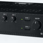Микшерный усилитель, 120 Вт, 3 микр, 2 AUX, 1 приоритетный, 2 зоны